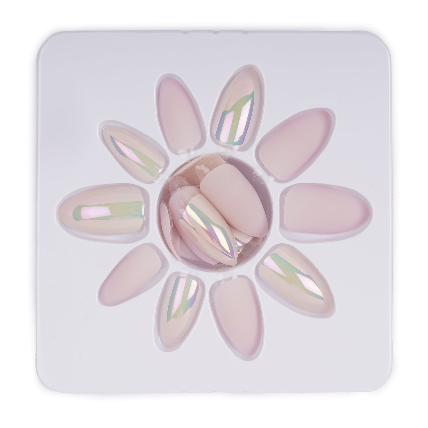 While blush pink press on nails is known to be a summer nail color staple, we think it's time for it to become a go-to shade for any occasion and all seasons — after all, what's more, timeless than crisp, blush pink with few pink holographic nails? A Holographic pink press on nails is a sophisticated look you can't go wrong with. it's a set that looks classy and will keep you in a bright mood, no matter the occasion. This one works on *literally* everyone, and you’ll definitely recognize the far-gone favorite. This shade feels decidedly more like a soft marshmallowy pink but to take it from basic to chick we have added a soft pink holographic effect that will keep you on the trend.