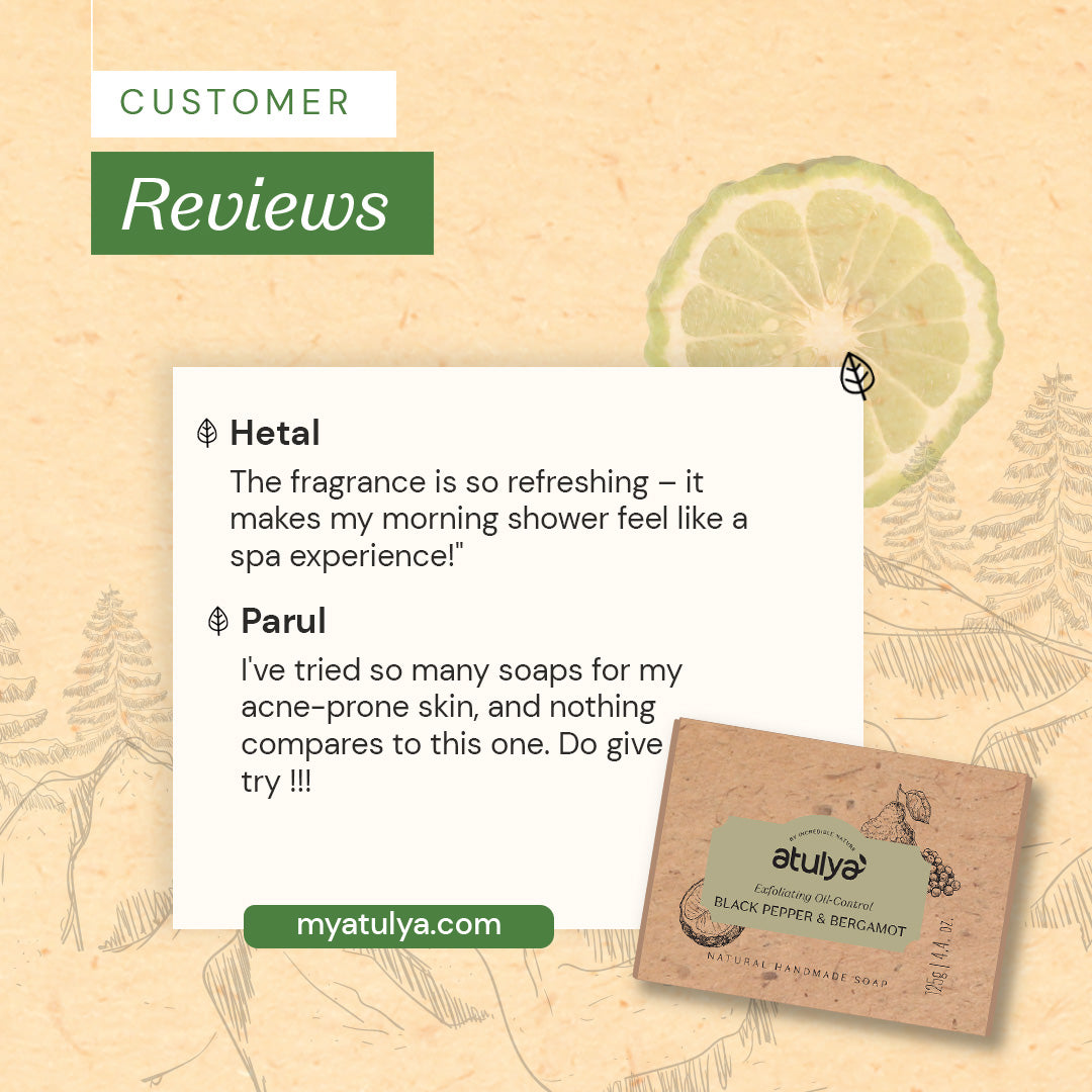 Atulya Black Pepper & Bergamot Soap | Exfoliates Gently, Refreshes Skin | SLS & Paraben Free | For all skin types | 125 gm