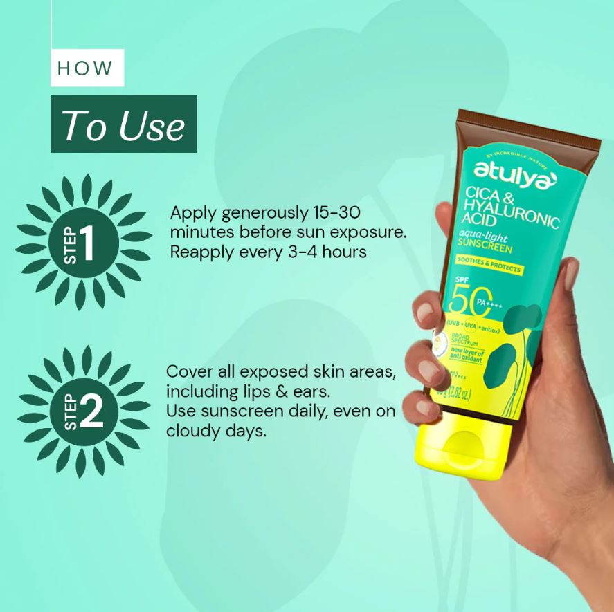 Atulya CICA & Hyaluronic Acid Sunscreen | SPF 50 PA++++ | Aqua-light - 80g