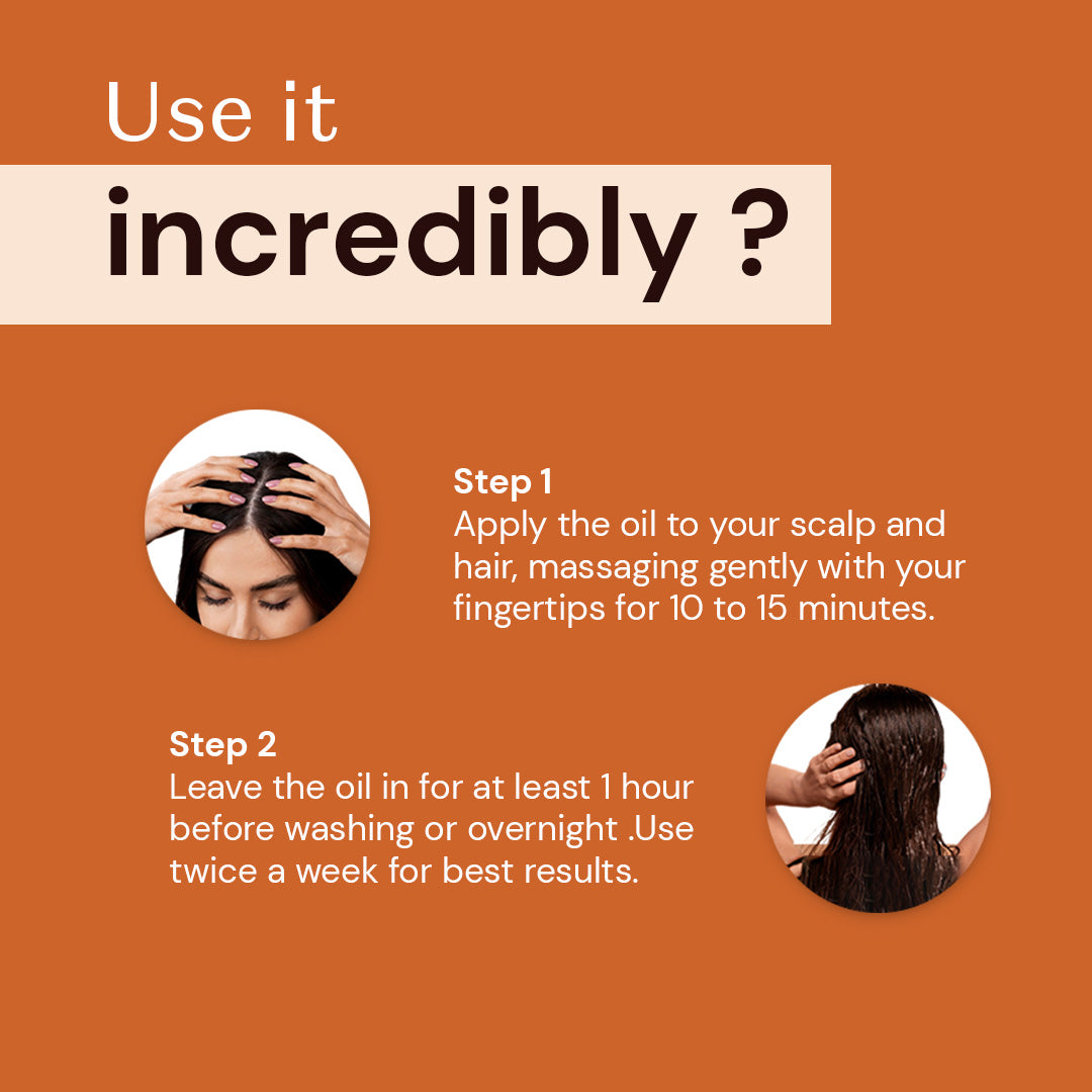 - Depending on your hair volume & length, take the required amount of oil.