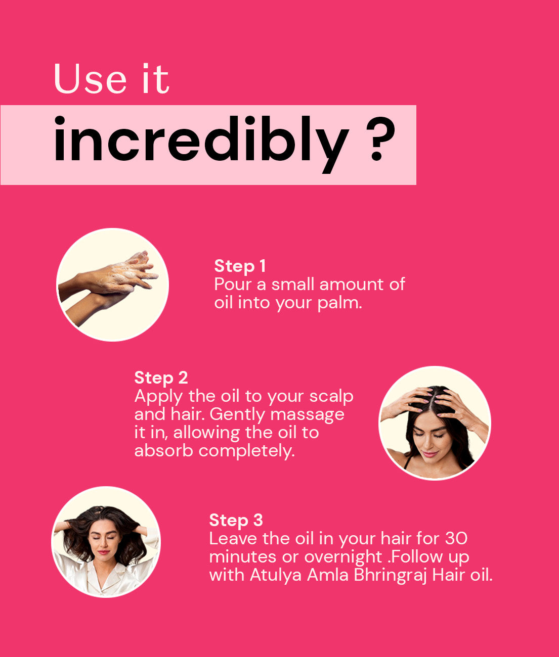 - Depending on your hair volume & length, take the required amount of oil.