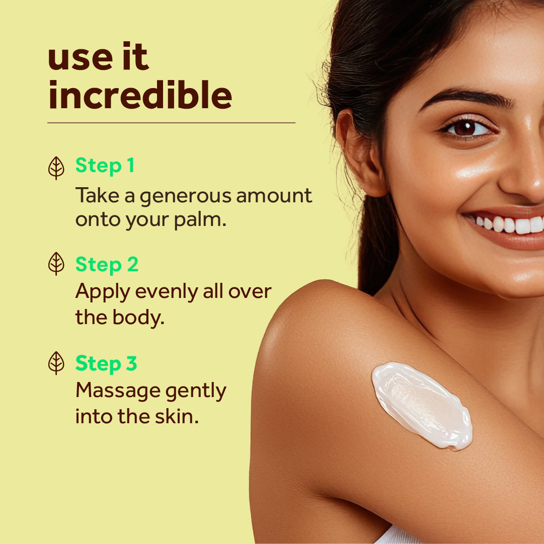 Atulya Royal Vanilla Body Lotion offers smoothing care with a warm, comforting scent. Enriched with lactic acid, it gently exfoliates while helping improve skin texture and softness. The velvety formula absorbs quickly, leaving the skin supple and deeply moisturized. Ideal for normal to dry skin types, it works well for day and night use. Free from parabens, mineral oil, and silicones, it delivers nourishing moisture with a luxe vanilla aroma.