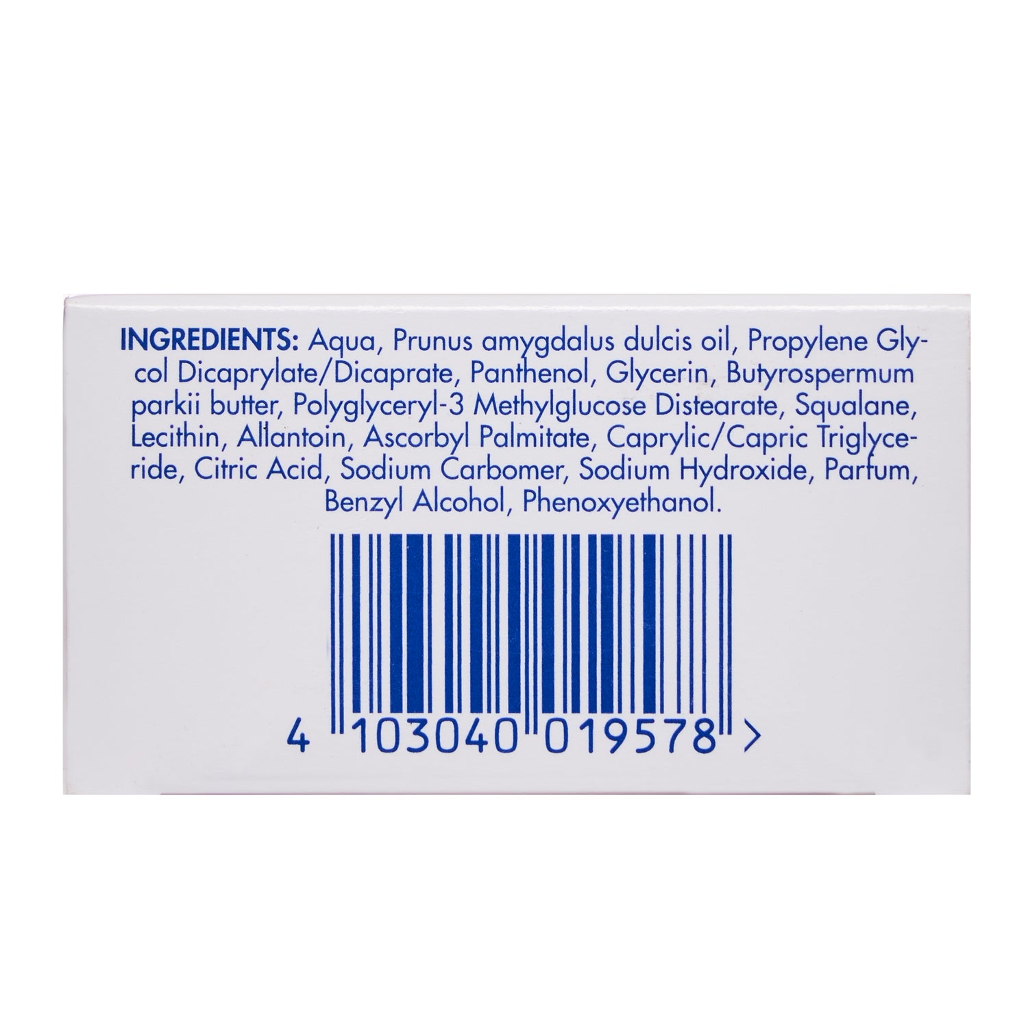 Aqua, Prunus amygdalus dulcis oil, Propylene Glycol Dicaprylate/Dicaprate, Panthenol, Glycerin, Butyrospermum parkii butter, Polyglyceryl-3 Methylglucose Distearate, Squalane, Lecithin, Allantoin, Ascorbyl Palmitate, Caprylic/Capric Triglyceride, Sodium Citrate, Sodium Carbomer, Parfum, Benzyl Alcohol, Phenoxyethanol