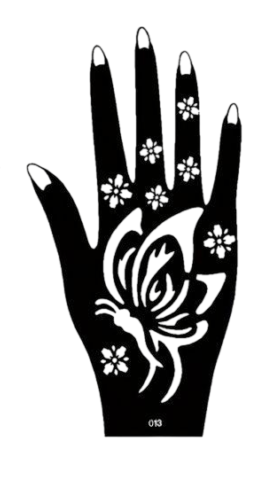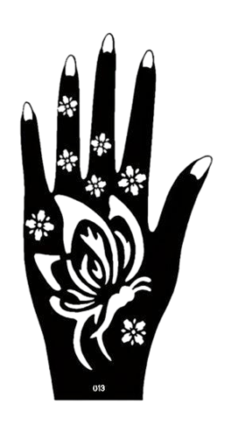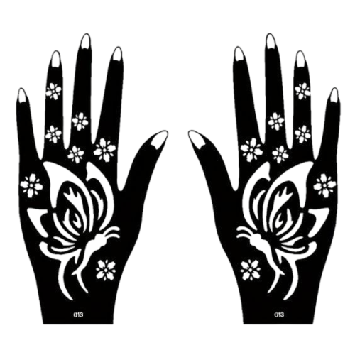 The pack contains: A pair of Henna Stencils for the right and left hand. The same can be used on the front as well as the backhand. Apply your creativity and make your designs.