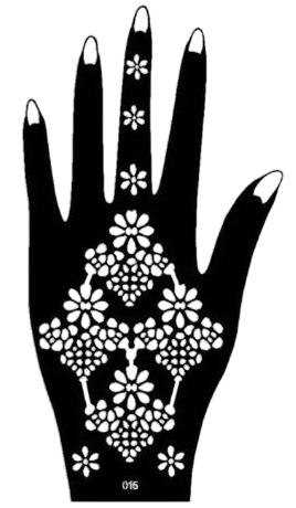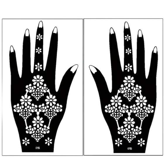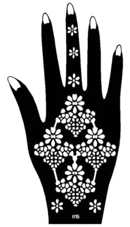 The pack contains: A pair of Henna Stencils for the right and left hand. The same can be used on the front as well as the backhand. Apply your creativity and make your designs.