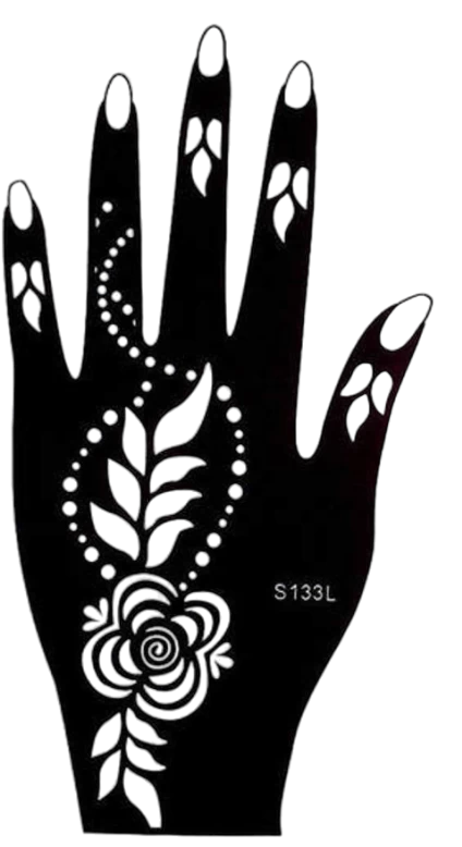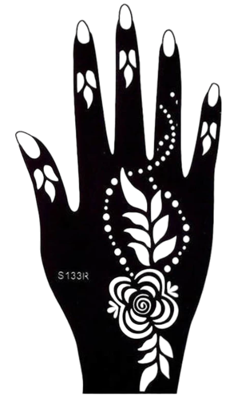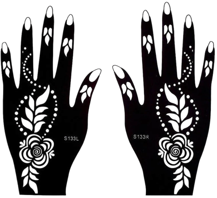 The pack contains: A pair of Henna Stencils for the right and left hand. The same can be used on the front as well as the backhand. Apply your creativity and make your designs.