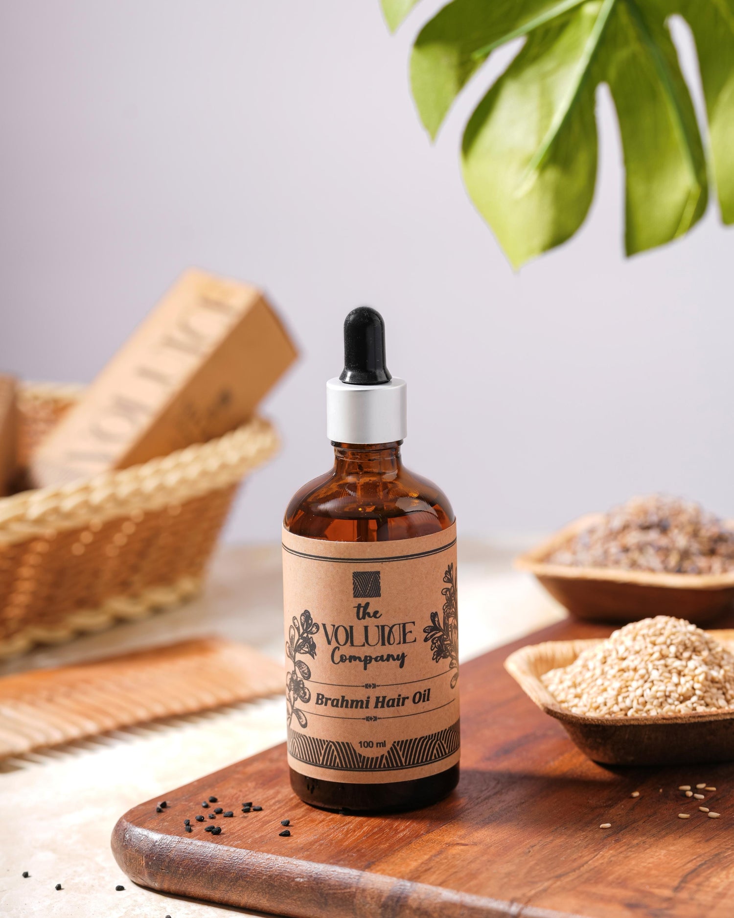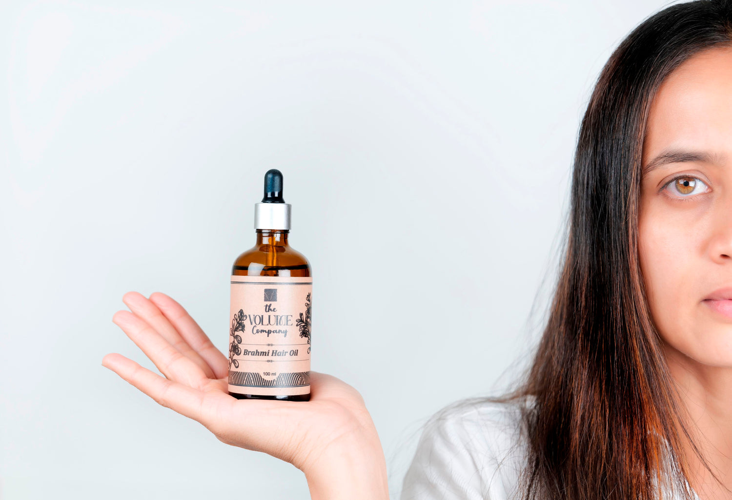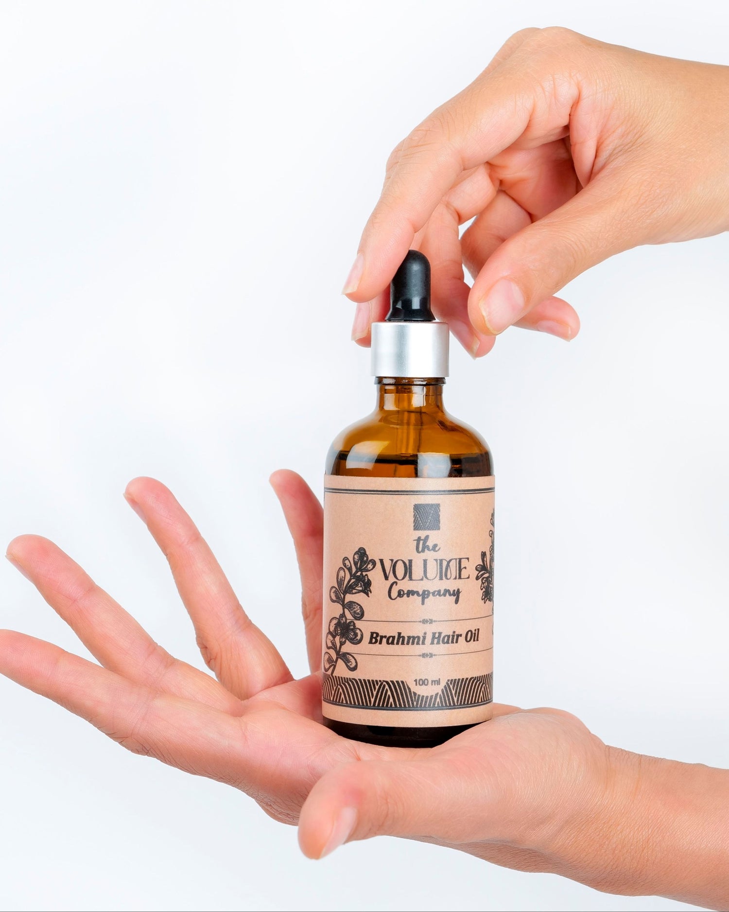 - Measure: Take 5 to 10ml of Brahmi Hair Oil.