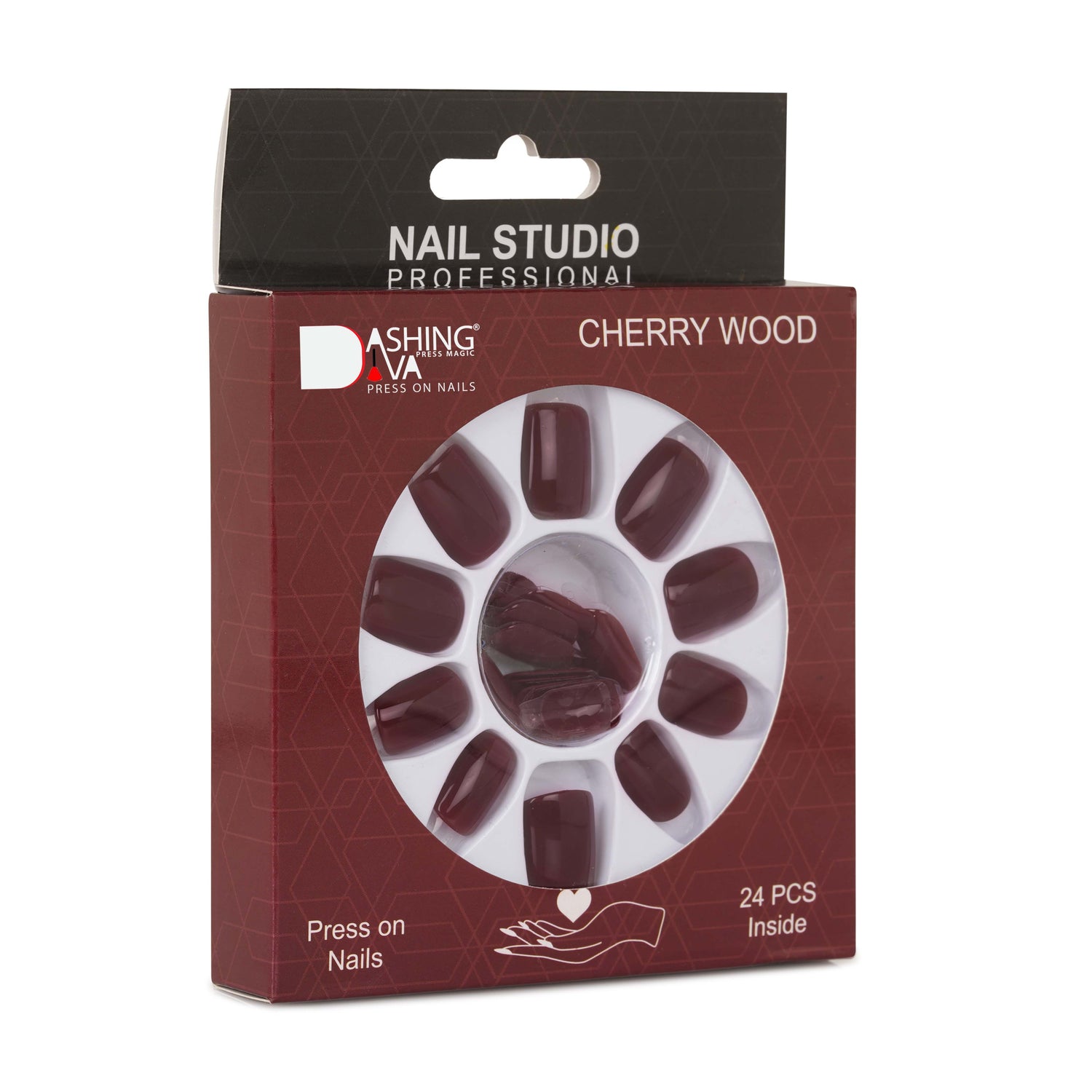 Stick On Nails | Cherry Wood Fake/False Reusable Acrylic Press on Nails With Quick Dry Nail Glue