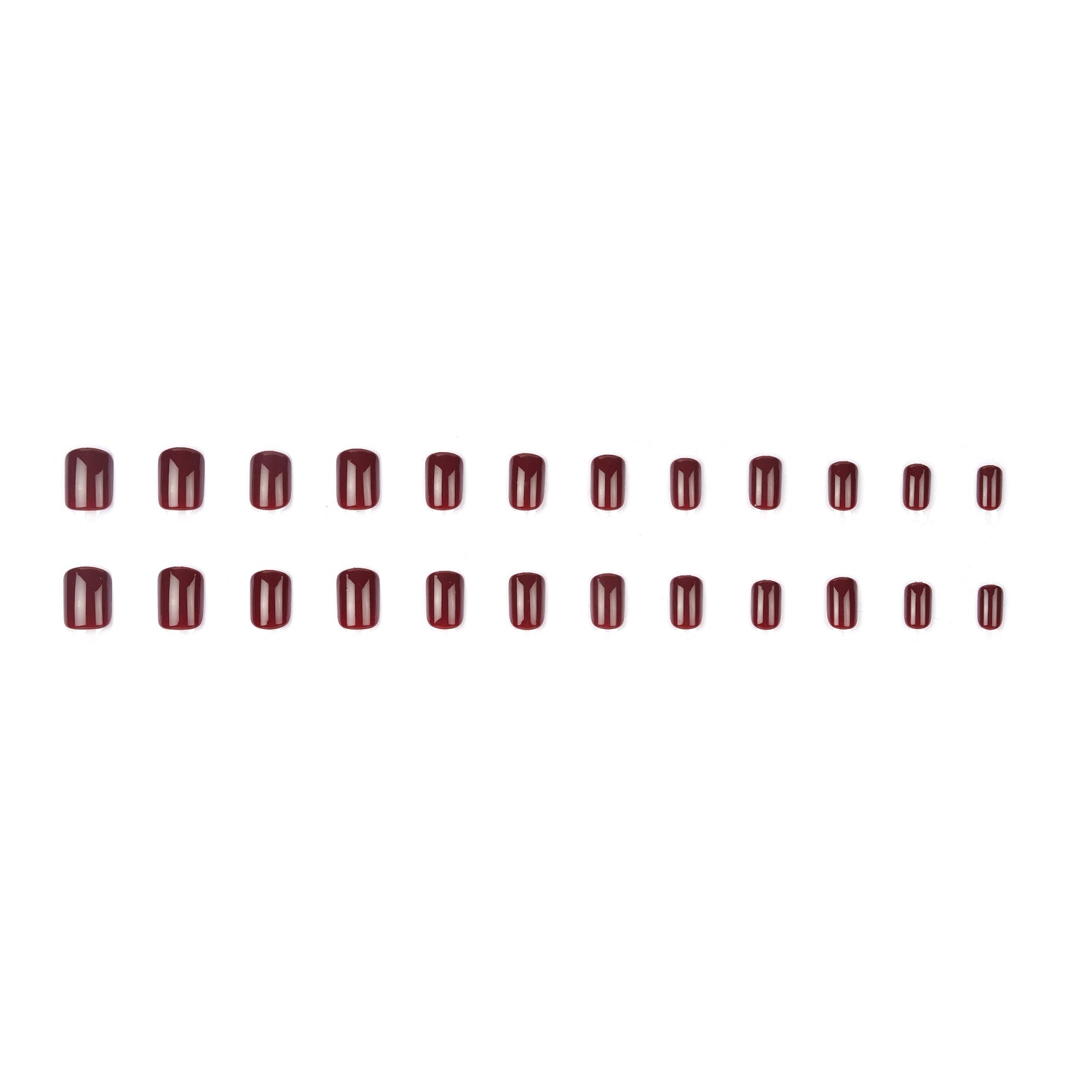 Package Contains: Pack of 24 Brick Red Press on Nails, 1 Cuticle Push, 2 Wipes, 1 Buffer & 1 Quick Dry Glue