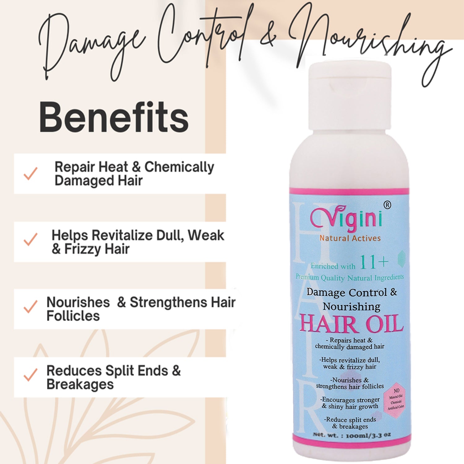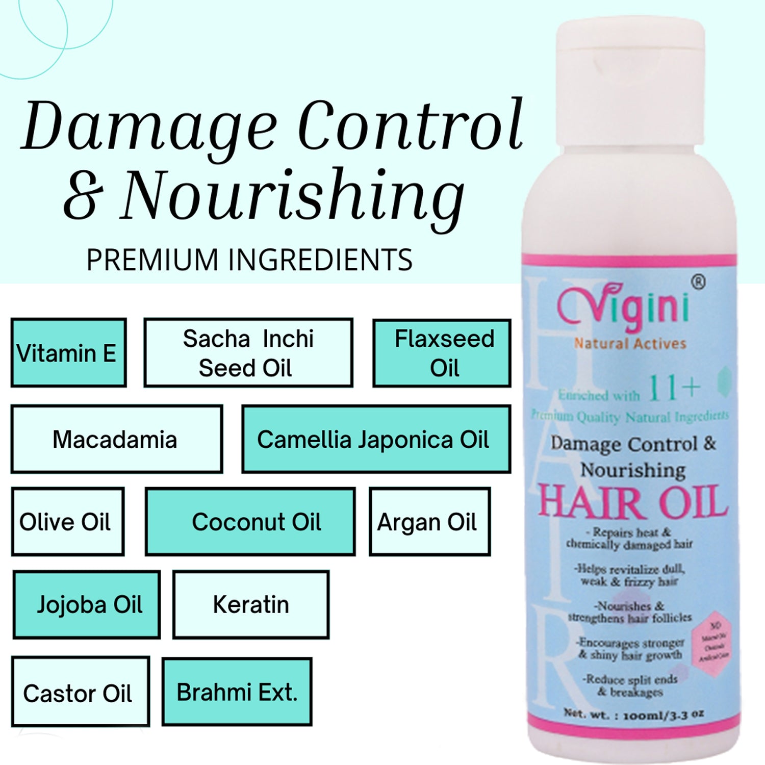 VIGINI 100% Natural Hair Oils help regain the lost shine and volume thickness by repairing the damaged hair and improving the quality.