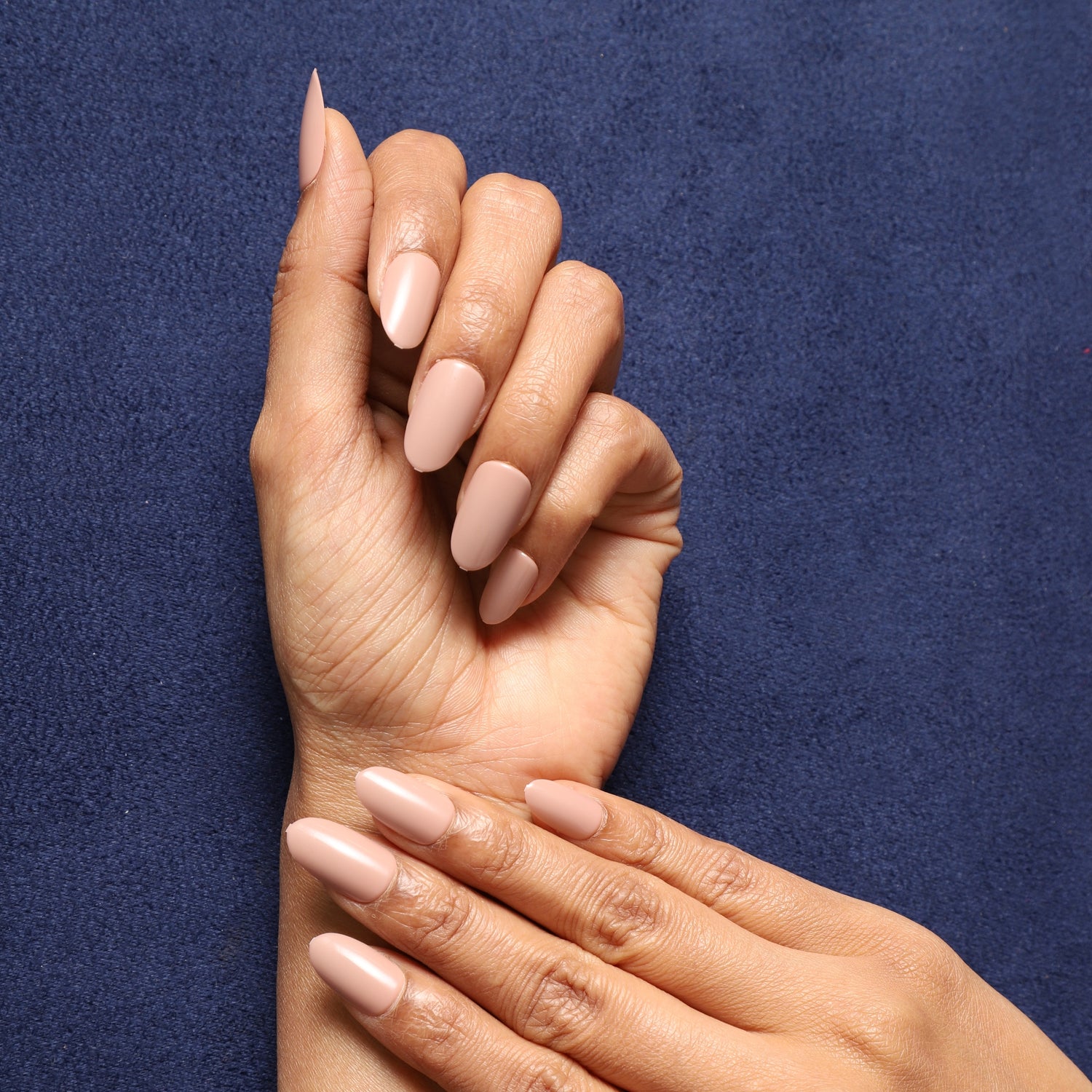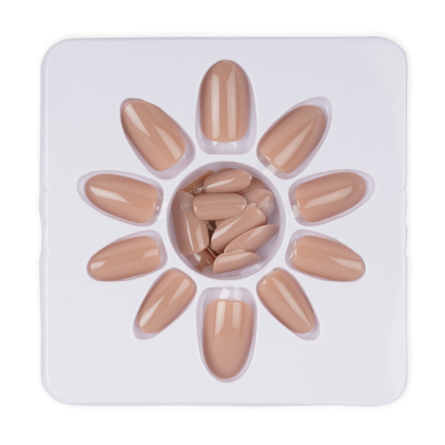 2. Pack of 28 Glossy Rose Beige Oval Shape Press on Nails, 1 Cuticle Push, 2 Wipes, 1 Buffer & 1 Quick Dry Glue