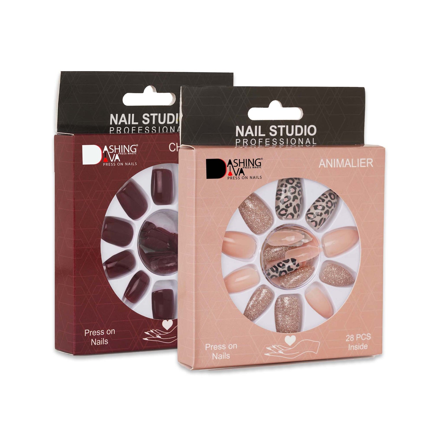 Stick On Nails | Dashing Diva Press Magic Cherry Wood, Animalier Reusable Artificial False Acrylic Press on Nails With Quick Dry Nail Glue, Pack of 2