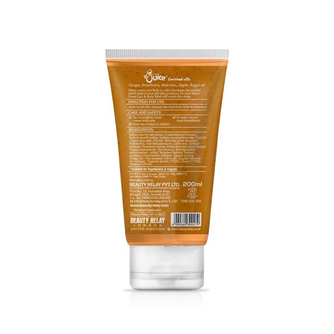 - Give your face the daily boost of fruity freshness with Dr Juice Stress Down Face and Body Wash which removes the excess oil and dirt and gets rid of dullness from the face as it is enriched with Strawberries.