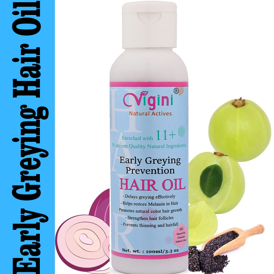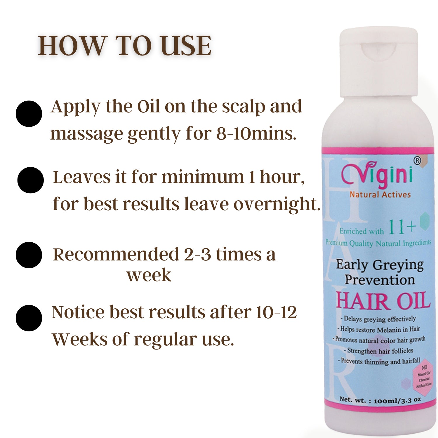 VIGINI 100% Natural Hair Oils are designed with utmost care and knowledge of the premium most effective ingredients to fight the increasing issue of greying in hair because of the use of chemically loaded hair products and lifestyle challenges.