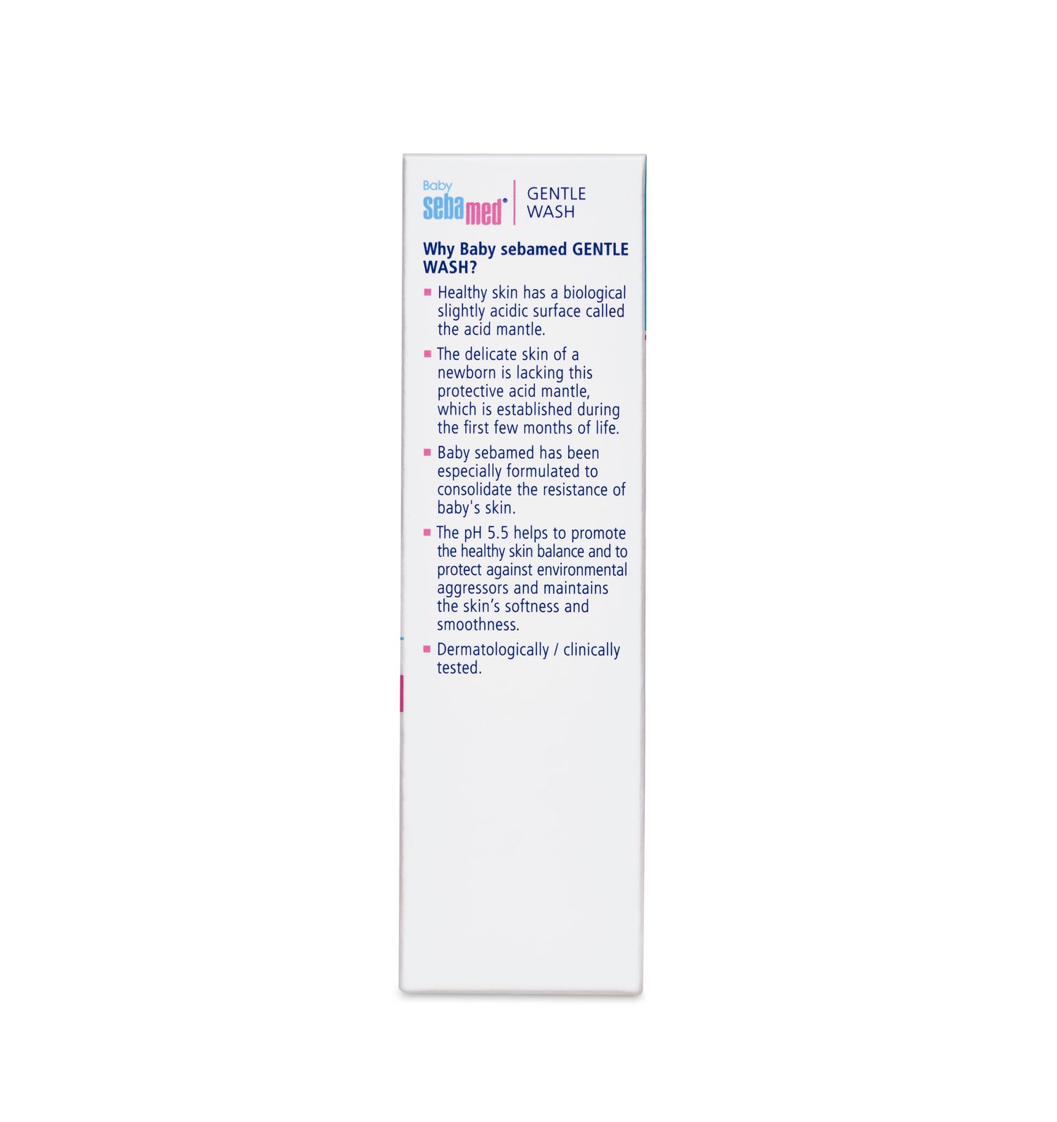 Sebamed baby wash extra soft has pH of 5.5 and has sugar based mild cleanser. Other cleansers for baby have pH>7 which leads to barrier damage. When baby is born, skin pH is 7. The acid mantle which protects the baby's delicate skin takes a few weeks to 3 months to develop, the pH of skin then becomes 5.5. At pH 5.5 alone the skin's protective barrier remains intact. It has been clinically proven that only at pH 5.5, the lipid and moisture loss is minimum and the growth of pathogenic bacteria is restricted. Sebamed baby wash extra soft is fortified with lipids similar to vernix (same as in mother's womb) to protect and hydrate the baby's skin. Sebamed baby wash extra soft is free from irritants and hence has 0% incidences of irritant reactions. Sebamed baby wash extra soft contains botanical ingredient, hence the reported incidence of allergic reaction is 0.000003%.Only at pH5.5 the baby's delicate eyes are not irritated and the tear free formula is free from formaldehyde.