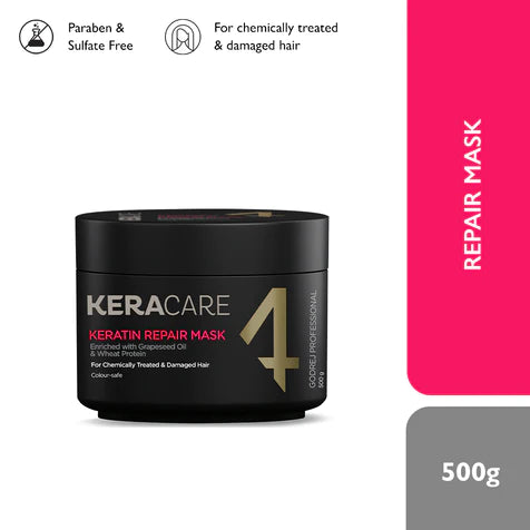 - Grapeseed oil and wheat protein are the two key ingredients that form the foundation of the Keracare Keratin Repair Mask.