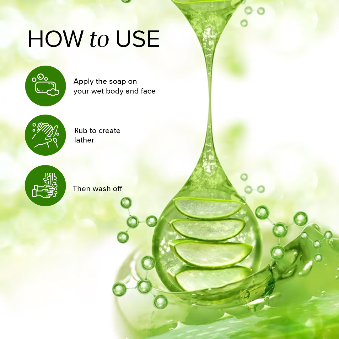 - Wet the aloe vera soap, lather it, and apply over your skin.