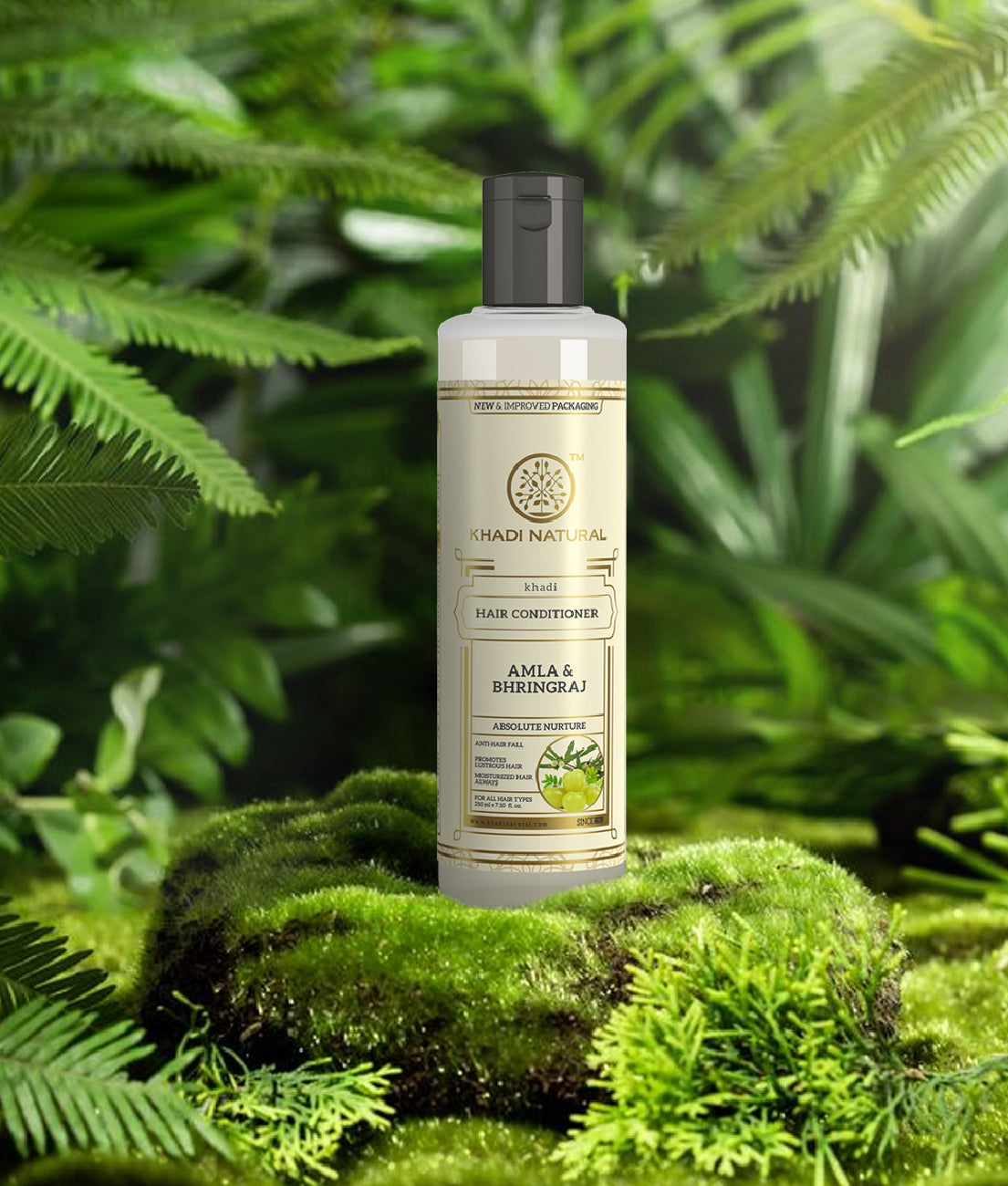 Khadi Natural Amla & Bhringraj Conditioner is a deeply nourishing Ayurvedic hair conditioner formulated to reduce hair fall, enhance shine, and promote smoother, more lustrous hair. The blend of Amla and Bhringraj delivers essential nutrients to the scalp and strands, helping strengthen weak roots and restore natural softness. Amla provides intense nourishment with its high vitamin C content, helping prevent dryness, dullness, and breakage. Bhringraj improves scalp circulation and supports stronger, healthier hair growth. This conditioner coats each strand with moisture, reducing frizz, improving manageability, and preventing split ends. Its gentle formula hydrates without weighing the hair down, making it ideal for all hair types, including dry and damaged hair. Regular use helps reduce hair fall, enhances shine, and leaves the hair silky, smooth, and revitalized. Free from harsh chemicals, it offers a natural and safe conditioning experience suitable for everyday hair care routines.