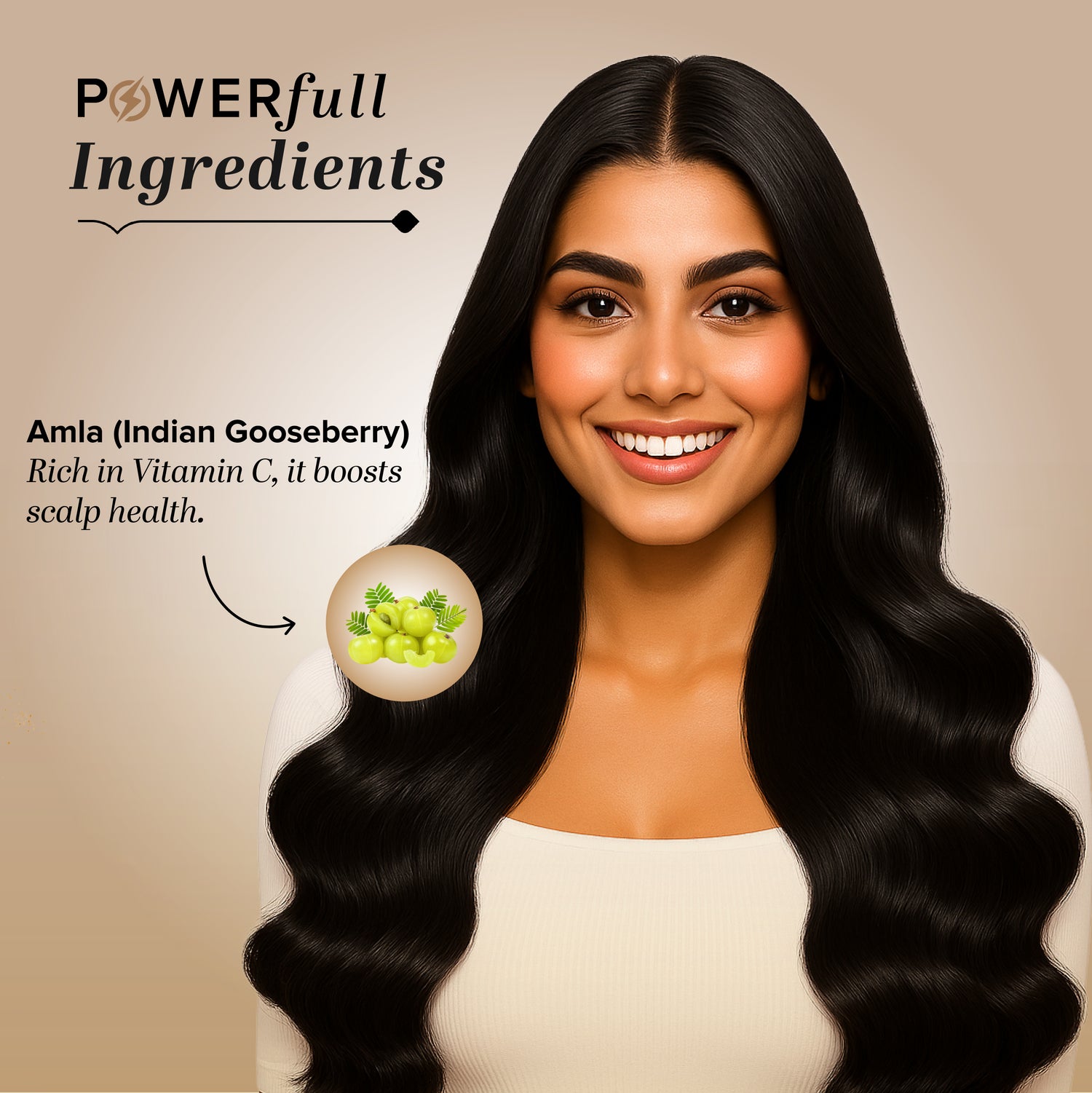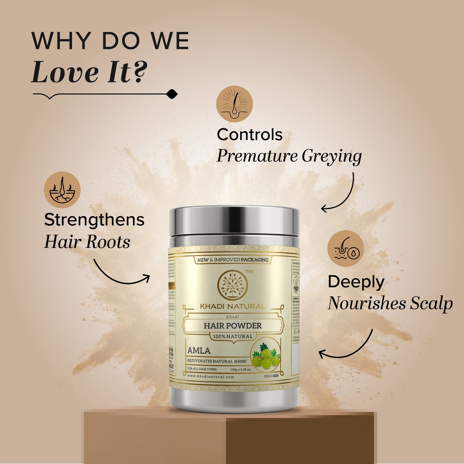 - The Ayurvedic Amla Hair Powder strengthens roots, promotes growth, prevents premature greying, and thickens hair naturally with its rich vitamin C and antioxidant content.