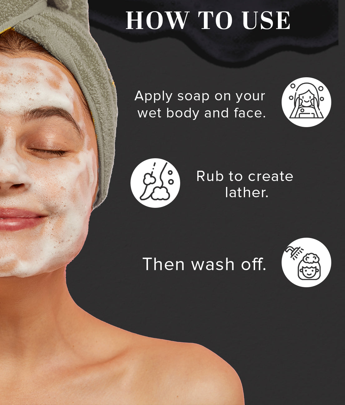 - Wet the neem charcoal soap and work up a lather.