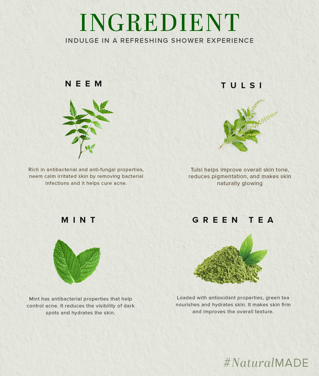 - The Neem & Tulsi Face Wash purifies the skin deeply, removes dead cells, unclogs pores, reduces acne, controls oil, and prevents breakouts while calming inflammation and improving clarity.