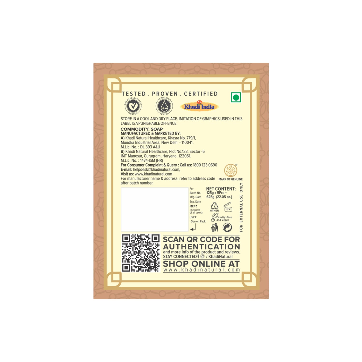 Khadi Natural Sandalwood Soap Gentle Cleansing Pack of 5 (5×125g)