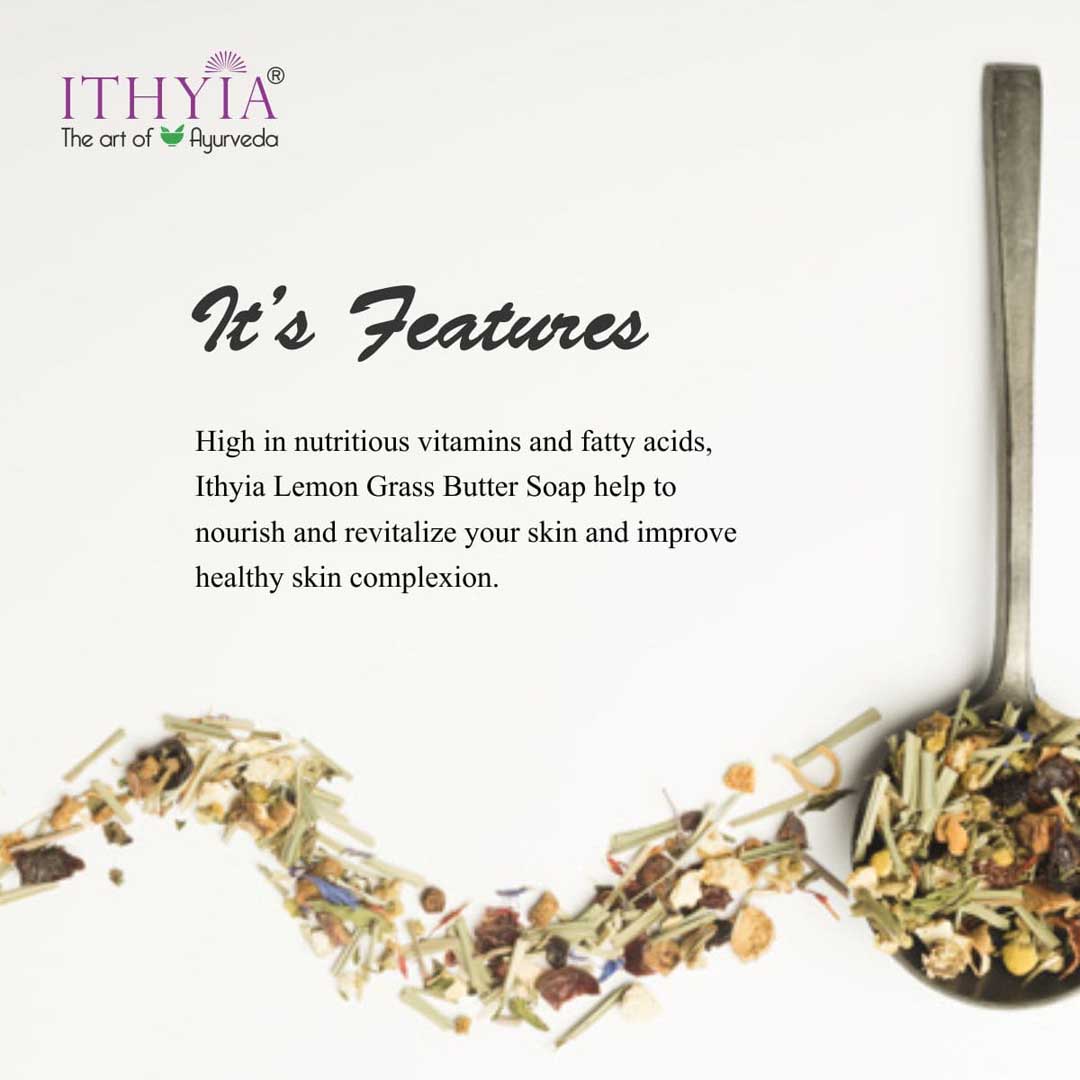 Butter Soaps are a great addition to a wide variety of projects as they are rich, creamy, and decadent. They are solid at room temperature and have varying textures. They have great moisturizing properties and pamper your skin beautifully. Butter Soaps are deeply healing and nourishing. High concentrations of fatty acids and vitamins make lemongrass an ideal cosmetic ingredient for softening skin in soap. It delivers key anti-inflammatory and anti-aging components right into the skin increasing its elasticity. It offers UV protection and provides the skin with essential fatty acids and the nutrients necessary for collagen production. Ithyia Lemon Grass Butter Soap is an intensely moisturizing body butter soap that provides deep-skin nourishment, alleviates dryness or flaking, and induces long-lasting softness and smoothness. Formulated with Lemon Grass, it has moisturizing properties. This is mixed with butter, herbs, oils, and fresh pastes, infused with silk to create an incomparably exquisite soap. It leaves the complexion soft, glowing, and gently polished. It has an excellent anti-oxidant and has the property of penetrating to the deepest layer of skin thereby providing radiance and increasing elasticity.
