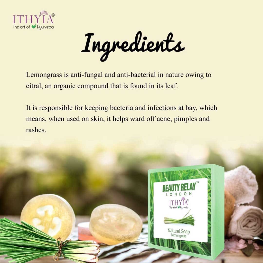 - Use Ithyia Lemon Grass Butter Soap in the shower on damp skin, to gently cleanse the skin.