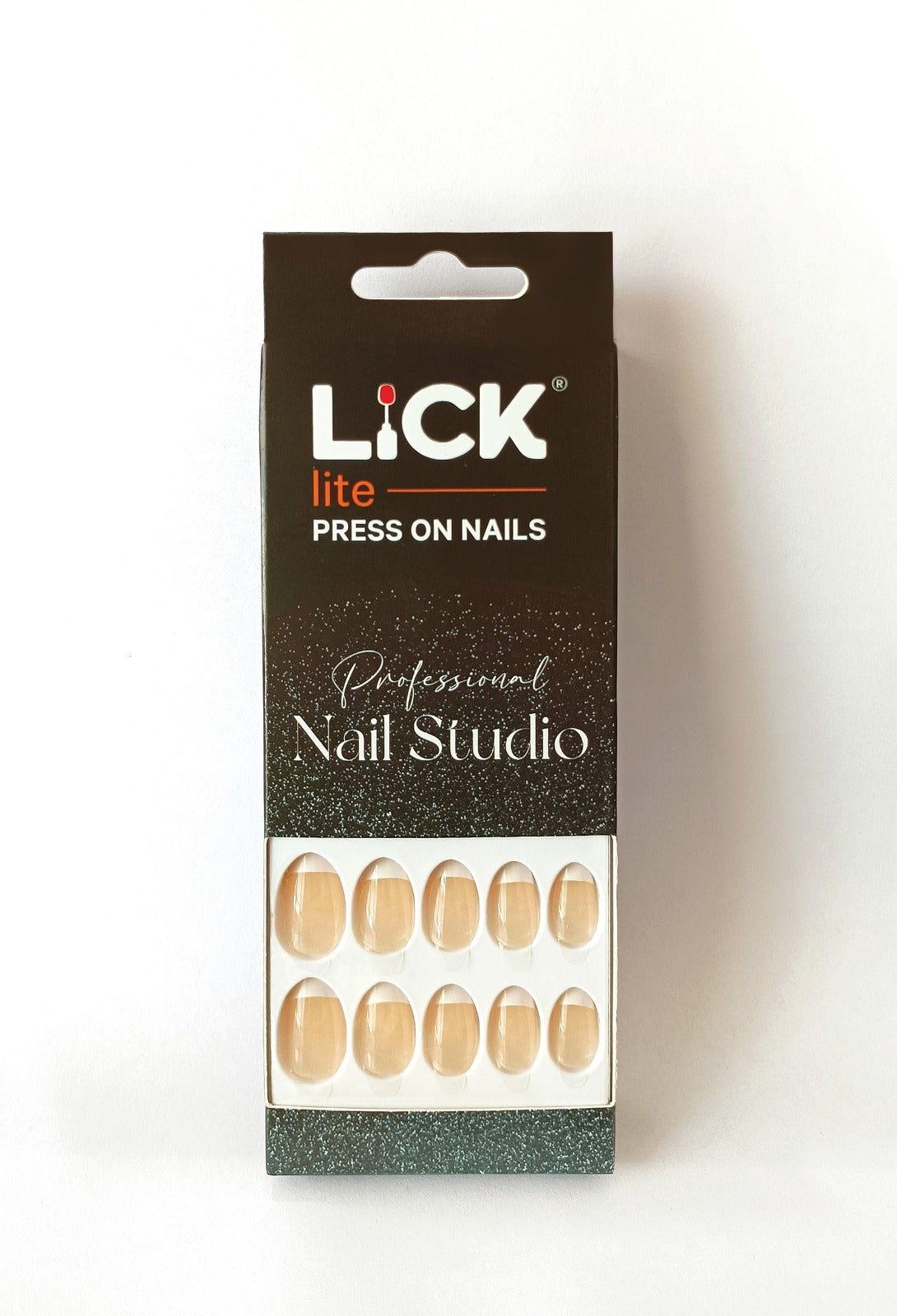 Lick Lite! Stick On Nails | Reusable False/Artificial/Fake Stick on Nails - French Manicure - 24 pcs
