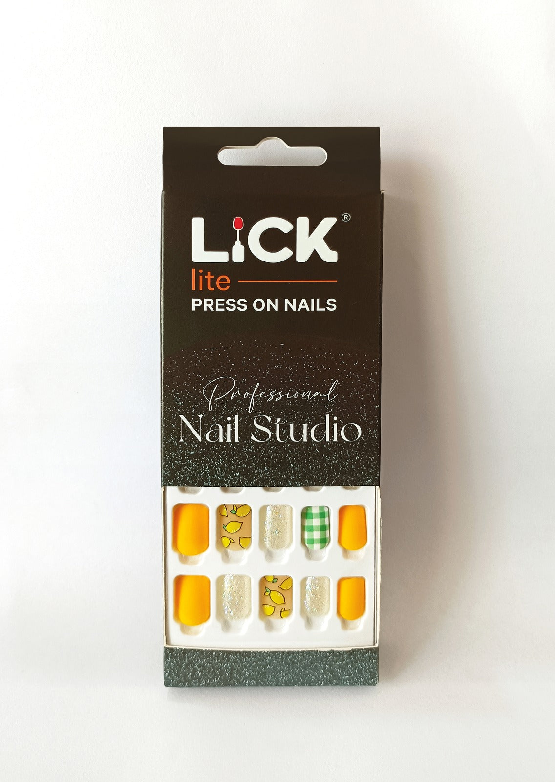 Lick Lite! Stick On Nails | Reusable False/Artificial/Fake Stick on Nails - Yellow - 30 pcs