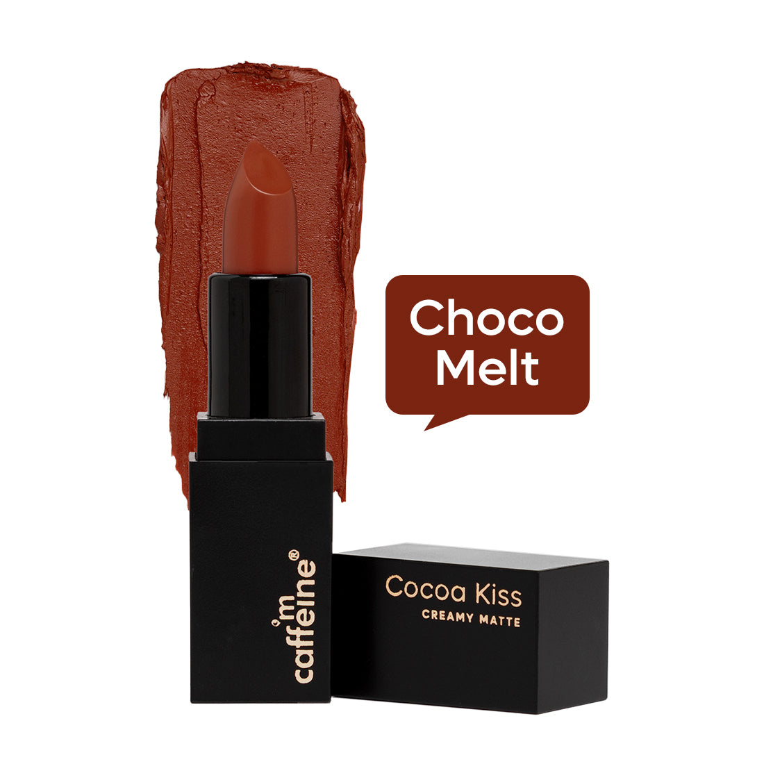 Cocoa Kiss Creamy Matte Lipsticks Moisturizing | Non-Drying | Lightweight | One Swipe Coverage Cover your lips with Cocoa Kiss Creamy Matte Lipsticks, where Nudes are never boring! Would you #DareToIndulge in a lipstick that’s so creamy & weightless, you'll forget you’re wearing one? Introducing, a range of 6 highly pigmented, moisturizing & lightweight lipsticks designed to spread like melted chocolate on your lips while its rich Cocoa aroma makes you want to indulge in it every day! Witness easy, one-stroke application with the blend of Cocoa Butter, Caffeine, and Vitamin E that nourishes, treats dryness reduces lip pigmentation, and protects the skin barrier. Ready to meet your next obsession? Why Should You Buy It? Moisturizing & Non-drying Color that won't fade, moisture that won't budge. Infused with Cocoa Butter, these lipsticks offer an intense color payoff minus the dryness! Weightless Application The feather-light application will make you forget you're even wearing lipstick! It doesn’t crease the lips, ensuring comfortable wear every single time. One Swipe Full Coverage Bid farewell to lipstick struggles with highly pigmented lipstick. It covers the lip contours evenly, leaving you with the perfect pout with just one stroke!