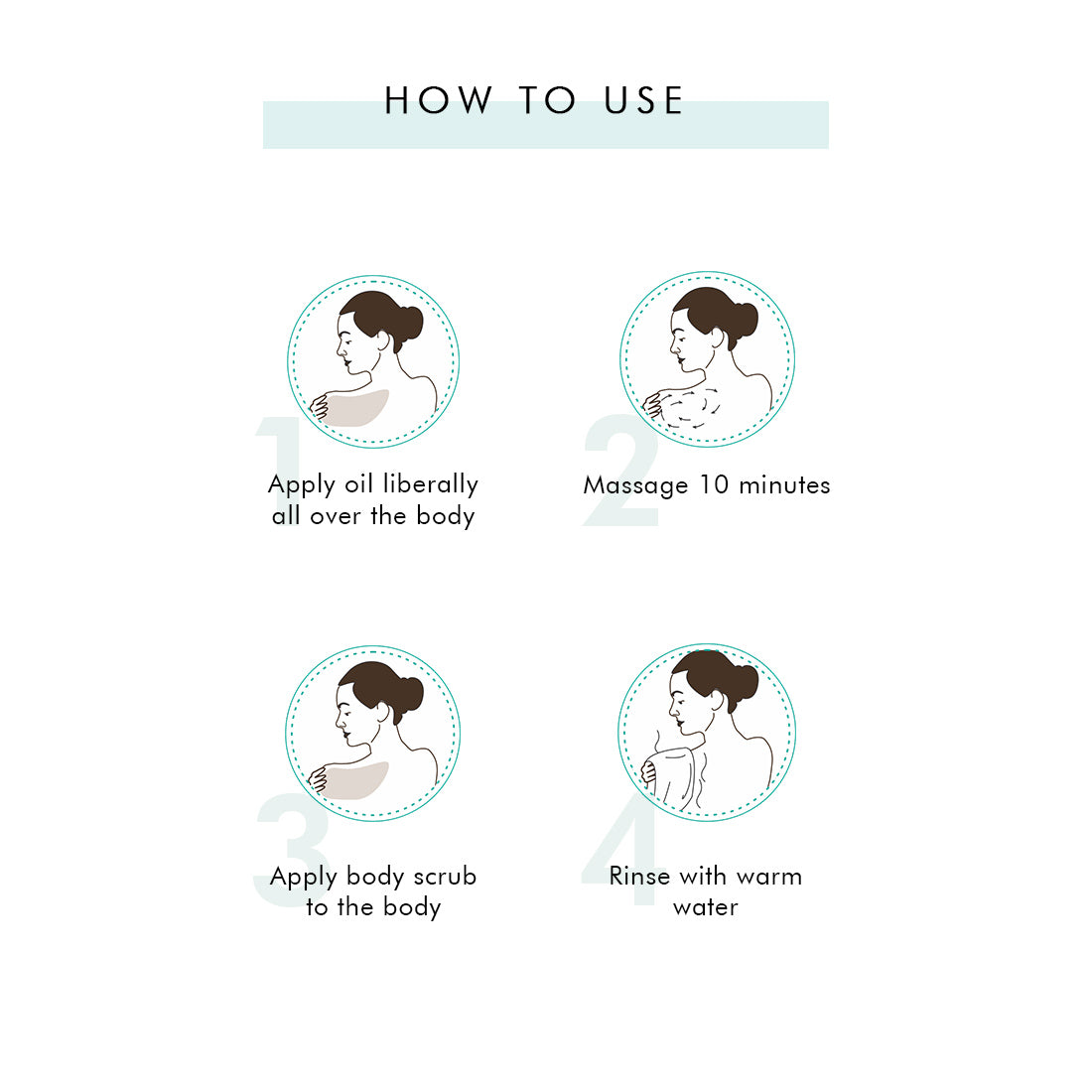 - Massage using circular motions for 10 minutes and leave it on for 10-15 minutes.