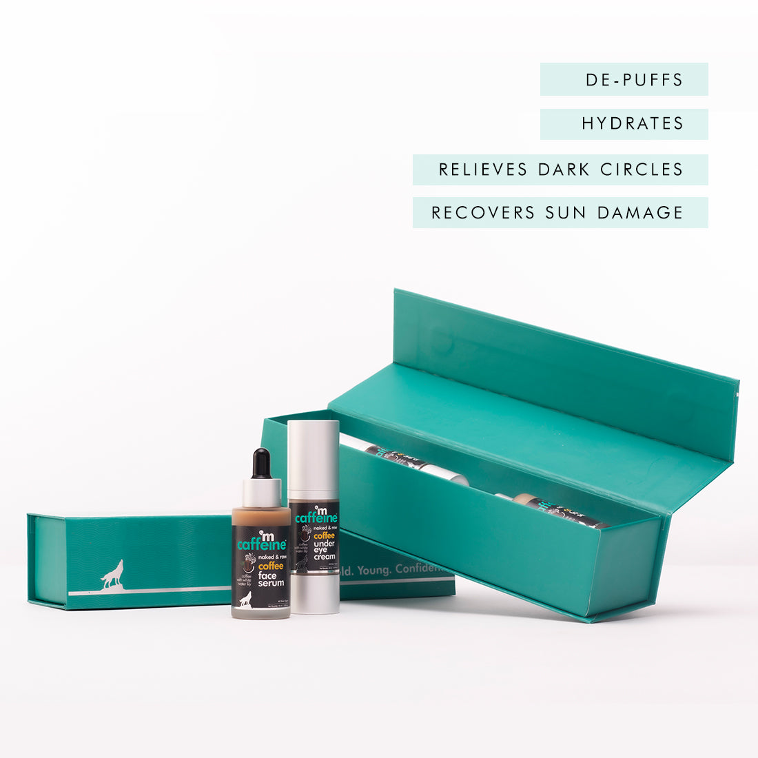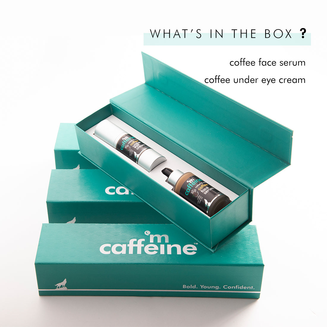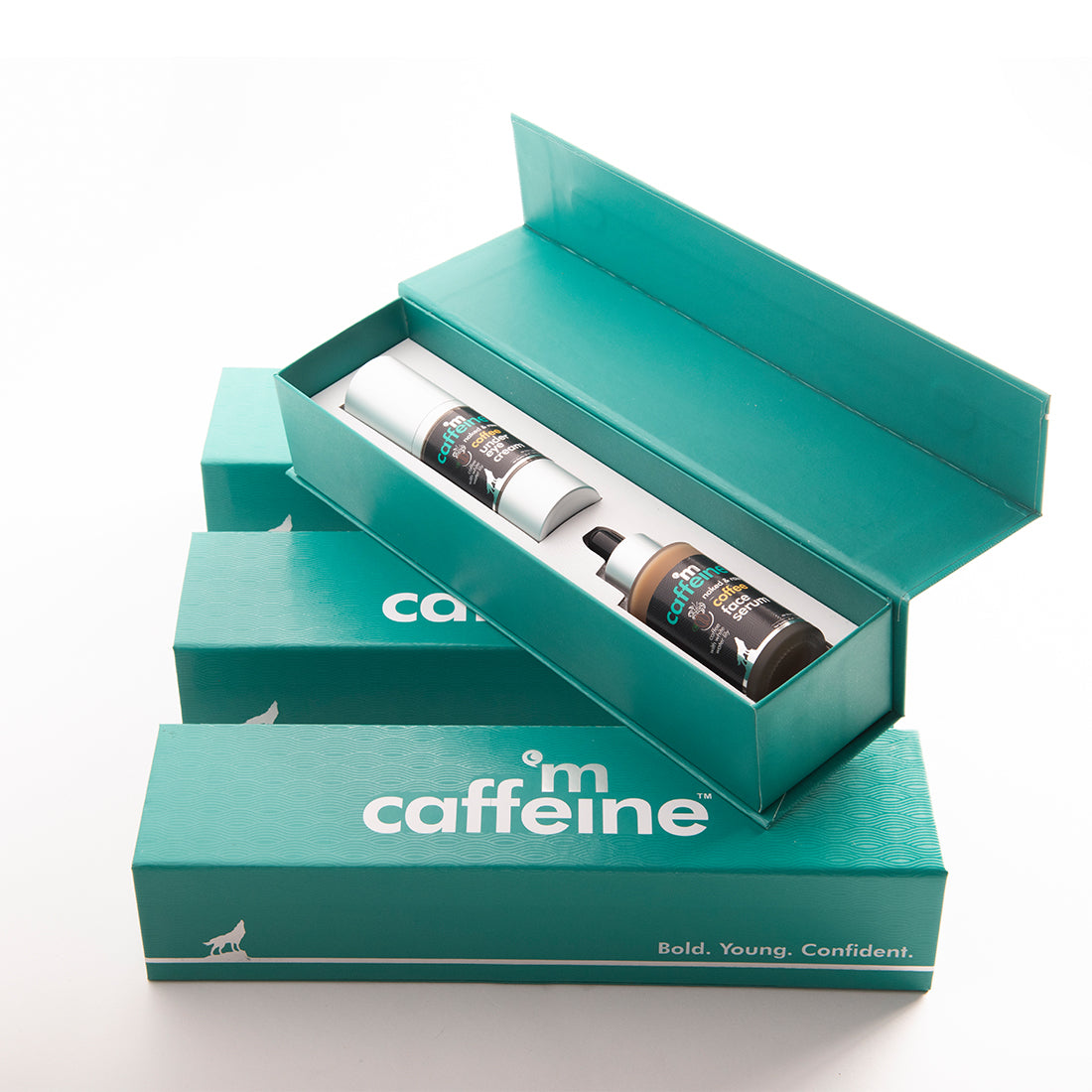The Kit has the Coffee Face Serum & Coffee Under Eye Cream. With powerful ingredients like White Water Lily, Hyaluronic Acid, Vitamin E & Sweet Almond Oil, this kit is a perfect present for the ones who like to keep it simple yet effective. A gender-neutral gift, the mCaffeine Coffee Prep - Gift Kit is the perfect pick for your loved ones!