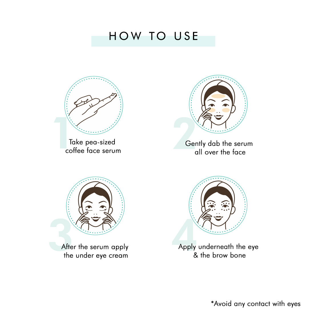 - Take a few drops of the Coffee Face Serum on your fingertips.