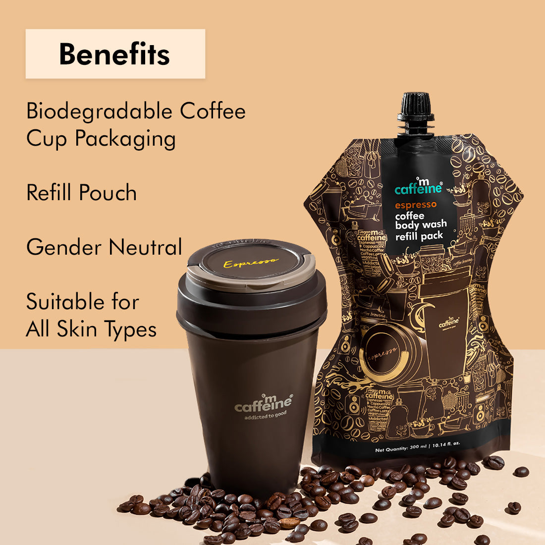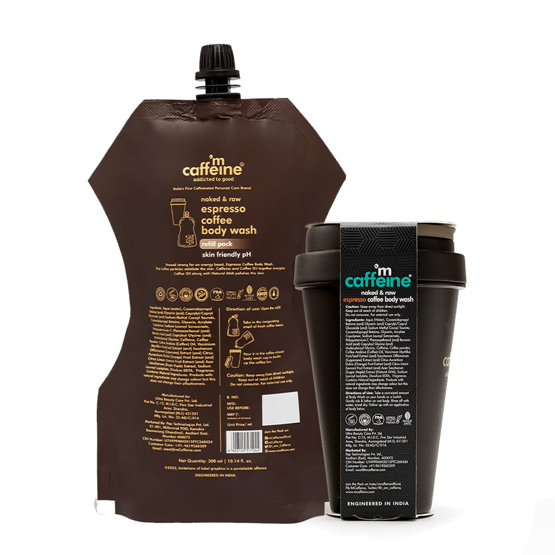 mCaffeine Naked & Raw Coffee Espresso Body Wash + Espresso Coffee Body Wash Refill Pouch Duo