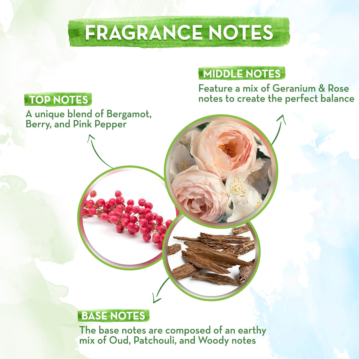 - Top Notes: It starts off with a spicy blend of Bergamot, Berry, and Pink Pepper.