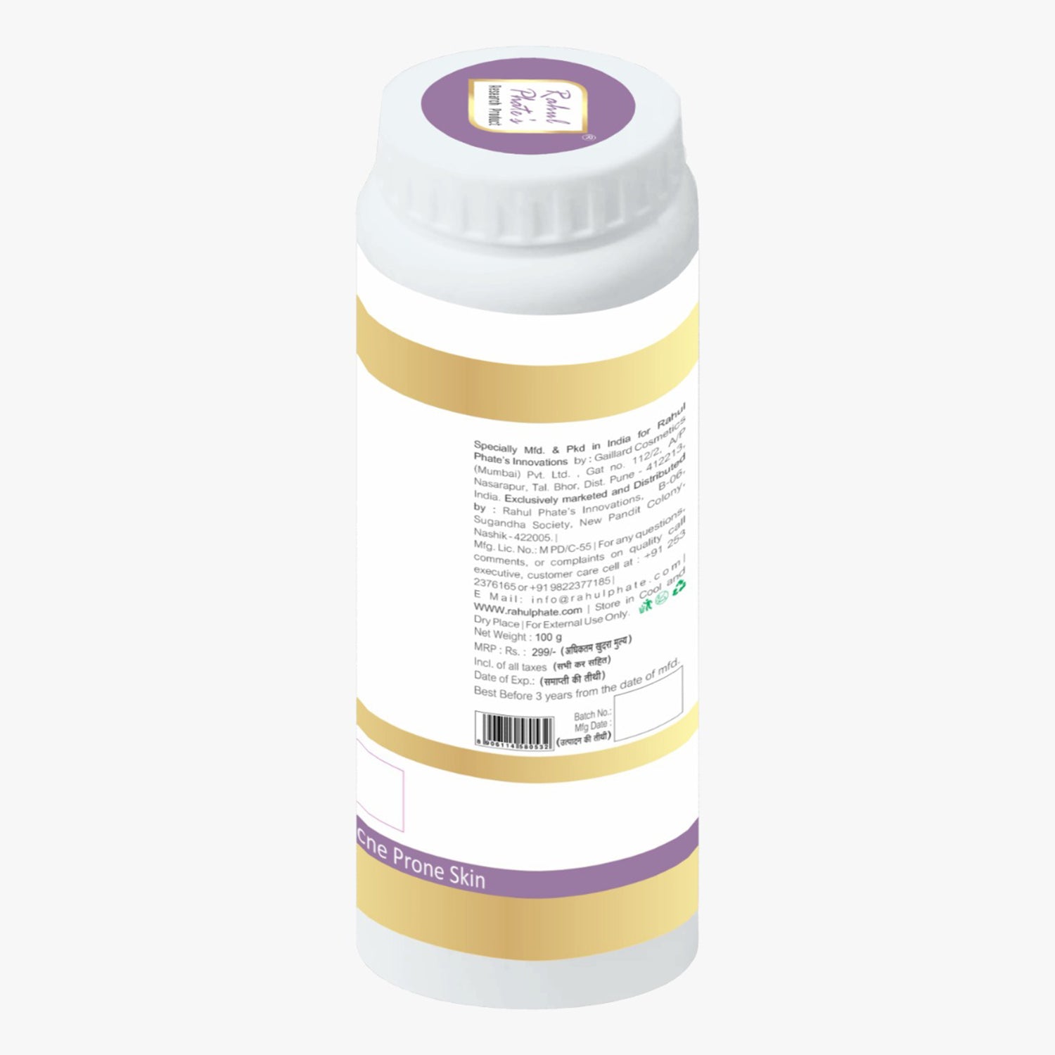 Ingredients : Kaolin, Multani Mitti, Zinc Oxide, Jesthamadha, Kachora, Ambahaldi, Nagarmotha, Santrasaal, Niacinamide, Neem Patra , Allantoin, Perfume.