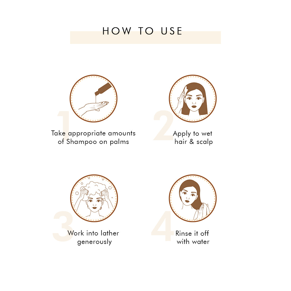 - Apply a generous amount of shampoo to wet scalp & hair.