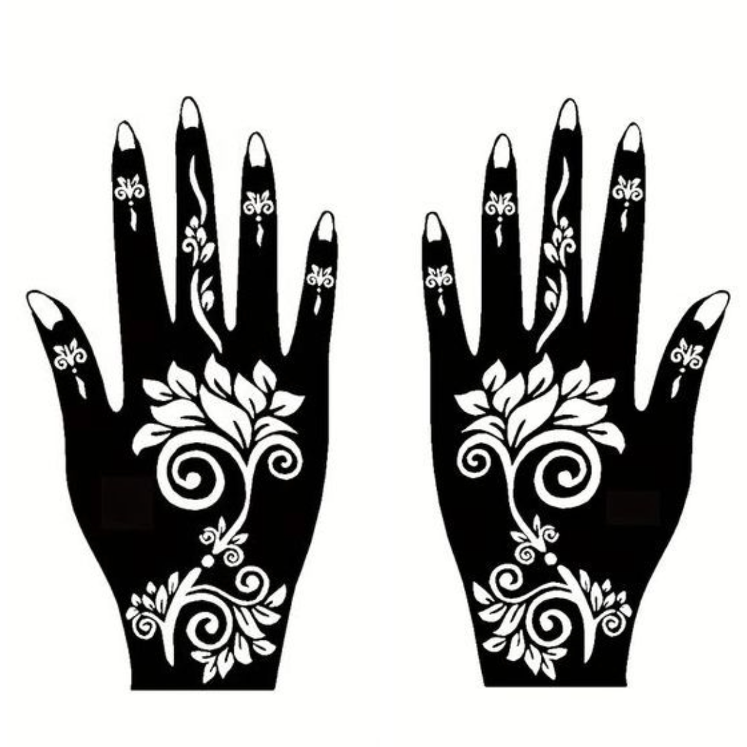 The pack contains: A pair of Henna Stencils for the right and left hand. The same can be used on the front as well as the backhand. Apply your creativity and make your designs.
