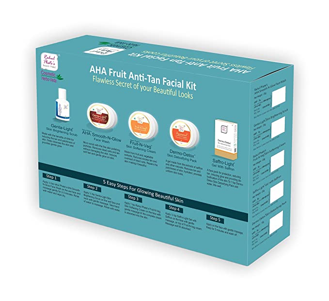 - Rahul Phate’s AHA Fruit Anti-Tan Facial Kit is a soothing facial to reduce dullness and promote fresh looks.