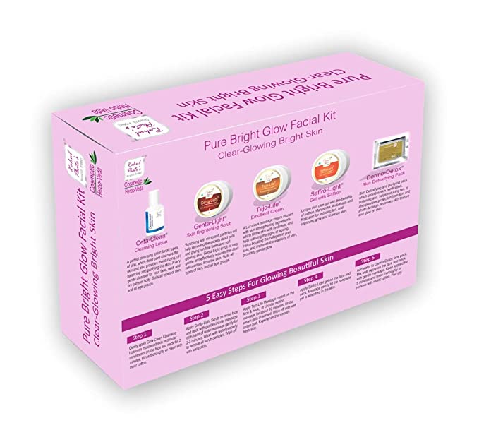 - Pure Bright Glow Facial Kit Ceta-Clean Cleansing Lotion: Water, Glycerine, Propylene glycol, Cetosteryl alcohol, stearic acid, Groundnut oil, Triethanolamine, Methylparaben, Propyl Paraben, Disodium EDTA, BHT, Perfume.