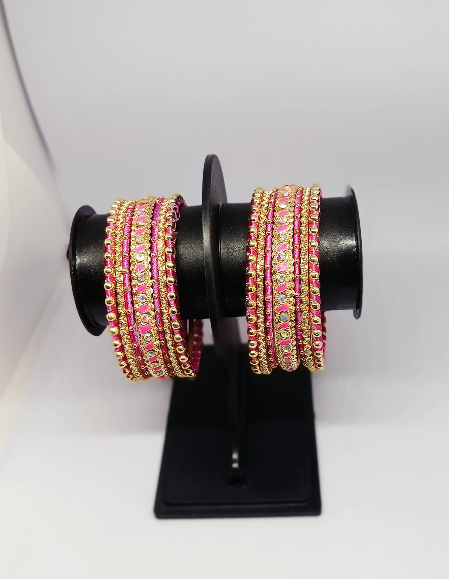 Set of 14 Silk Thread, Stone & Kundan Studded Chuda Bangles | Ethnic Collection | Gift for Women - Baby Pink